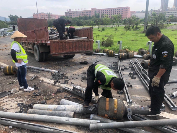 公司多部門聯(lián)合處置廢舊物資 7月27日,為協(xié)助工程部開展6.13浙江溫嶺槽罐車爆炸事故受損路段維修,盡早恢復(fù)通行。資產(chǎn)管理部在本月第二次聯(lián)合工程部、計(jì)財(cái)部、監(jiān)察室對公司路損防撞護(hù)欄板及立柱等廢舊物資進(jìn)行處置。