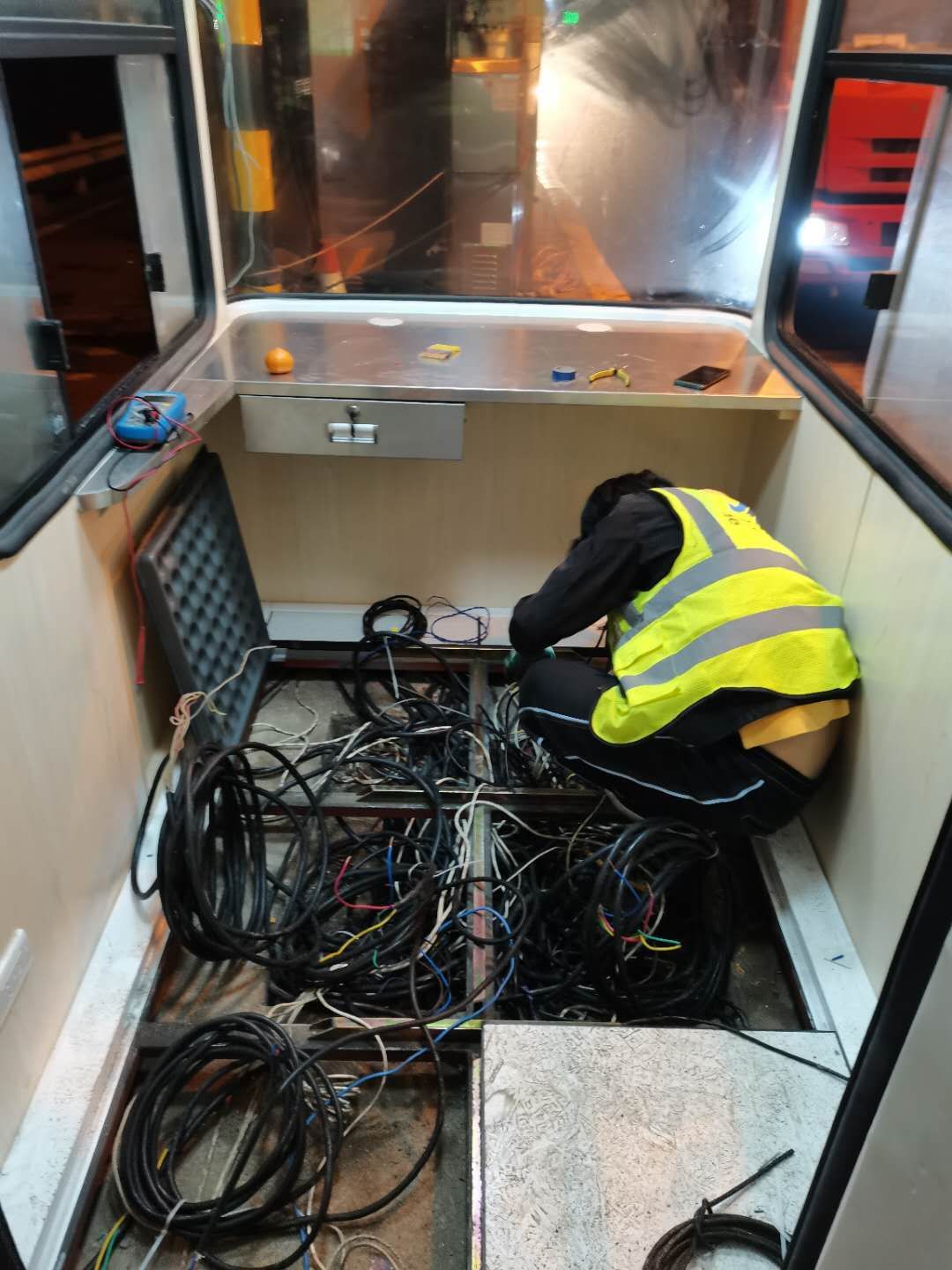 21日下午4點(diǎn)左右,訂購的新崗?fù)ず蛽p壞的設(shè)備設(shè)施陸續(xù)到位,中心值班人員協(xié)同設(shè)備廠家一起將其安放并固定至車道原位置。因崗?fù)A倒時拉斷了底下很多線纜,在拆除設(shè)備時又因?yàn)榫o急搶修需要沒有作相應(yīng)標(biāo)注,現(xiàn)場各種電線接頭雜亂如麻??紤]到夜間查線、接線存在一定的安全隱患,也不利于施工,搶修人員決定第二天再戰(zhàn)。
