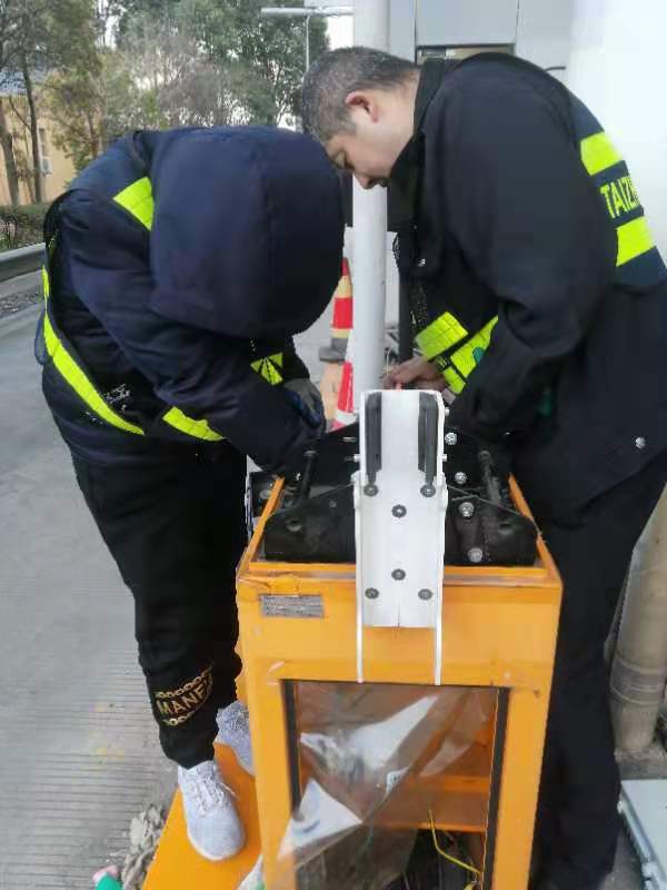 1月20日,公司董事長、總經(jīng)理陳文波到收費(fèi)所現(xiàn)場查看,要求加快速度抓緊搶修崗?fù)?,重新安裝好各項(xiàng)設(shè)備設(shè)施,盡快開通車道。接到任務(wù)后,維養(yǎng)中心緊急召開會議討論,制定新崗?fù)ぐ惭b、設(shè)備調(diào)試方案。