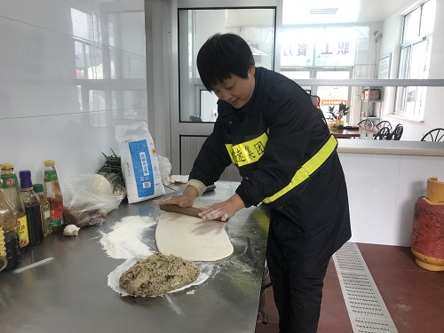 圖為溫嶺西收費(fèi)所副所長(zhǎng)也加入做飯隊(duì)伍
