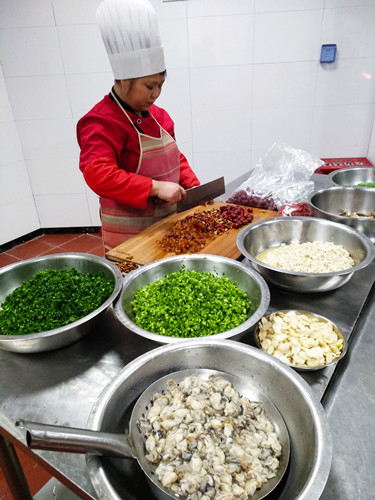 臺州的元宵節(jié)是從正月十四開始的。十四吃咸羹、十五吃甜的山粉糊。下午兩點,臺州所的食堂大姐們就開始忙活了。 早在前幾天,來自臨海的食堂大姐利花,就開始為臺州所的元宵節(jié)準備食材清單。在她的家鄉(xiāng)四岔,咸的糟羹里是要放海蠣的,她說一到正月十四,滿街都會有剛從牡蠣殼里現(xiàn)挑出來閃著新鮮青色的海蠣肉賣,但在黃巖,找遍菜場,只有冰凍的泛著白光的海蠣肉,也不是每天都有賣,有時還要靠運氣才能買到。利花有些無奈,她想,都是離海不遠的地方,為什么就沒有新鮮的海蠣?她也許不知道,在黃巖一帶,大家還是喜歡吃甜的山粉糊,所以不需要海蠣。