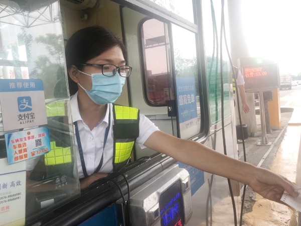7月8日,一輛來自江蘇的小轎車由于沒帶現(xiàn)金也沒有支付寶,無法繳納通行費,司機表現(xiàn)頗為激動:“是你們沒有微信支付,又不是我不繳費,這是你們的問題!”丁小燕不卑不亢,她明白司機也需要理解,只有換位思考,將心比心,才能贏得更多的理解與尊重。于是她陪同司機一起,耐心有禮地向后面車輛的司乘解釋協(xié)調(diào),最終換得了現(xiàn)金,支付了通行費。當車輛啟動時,司機帶著歉意的笑容和她說了聲“謝謝,再見!”