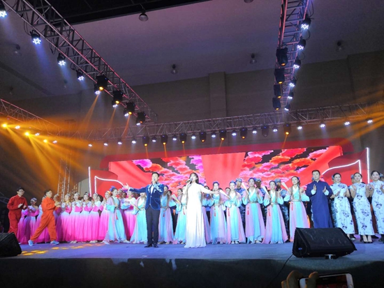 圖為《不忘初心》歌曲演唱現(xiàn)場 晚會上還有其他許多精彩的節(jié)目,讓現(xiàn)場觀眾連聲驚嘆,最后本次文藝晚會在一曲《不忘初心》的歌聲中結束。