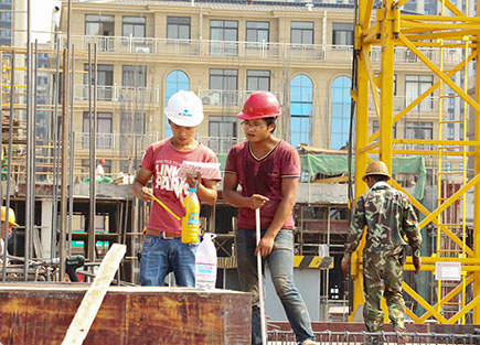 “每次望著自己參加的勞動(dòng),看著房子在一點(diǎn)點(diǎn)增高,就覺(jué)得很有成就感。” 被曬得烏黑的嚴(yán)師傅笑了笑。自文鼎苑項(xiàng)目開(kāi)工以來(lái),他與其他八個(gè)同鄉(xiāng)就一直在這里工作。