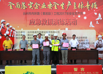 集團(tuán)總工程師江輝,安全總監(jiān)項(xiàng)同富,騰達(dá)建設(shè)集團(tuán)總經(jīng)理?xiàng)罹湃绯鱿顒?dòng),黃巖東區(qū)、南區(qū)建設(shè)指揮部相關(guān)人員,內(nèi)環(huán)路(黃巖段)工程施工單位項(xiàng)目領(lǐng)導(dǎo)、專(zhuān)職安全員,市政公司全體員工參加活動(dòng)。