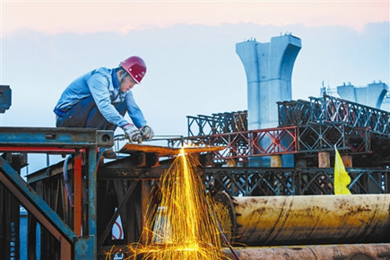 臺州高速市政公司在市內(nèi)環(huán)路建設(shè)中,緊盯全線11月11日通車目標(biāo)不放松,取得較好效果。截至8月30日,公司投資建設(shè)的內(nèi)環(huán)路(黃巖段)已完成投資產(chǎn)值10.9億元,占合同總價(jià)的93%。圖為6號立交的施工人員正在緊張施工。 本報(bào)通訊員鐘 彪攝